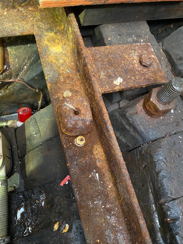 Den gamla risiga motorbädden. Ny har tillverkats och skall monteras