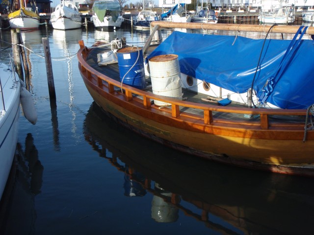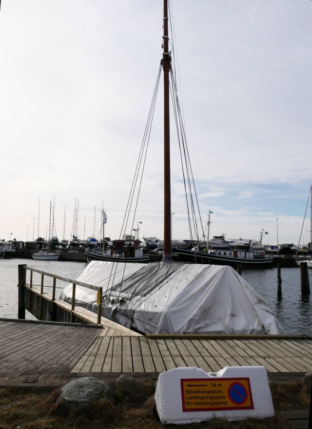 DAGMAR flyttar till sin plats på träbåtsbryggan