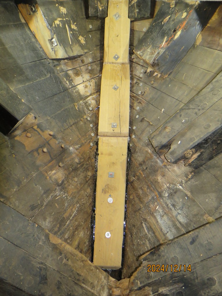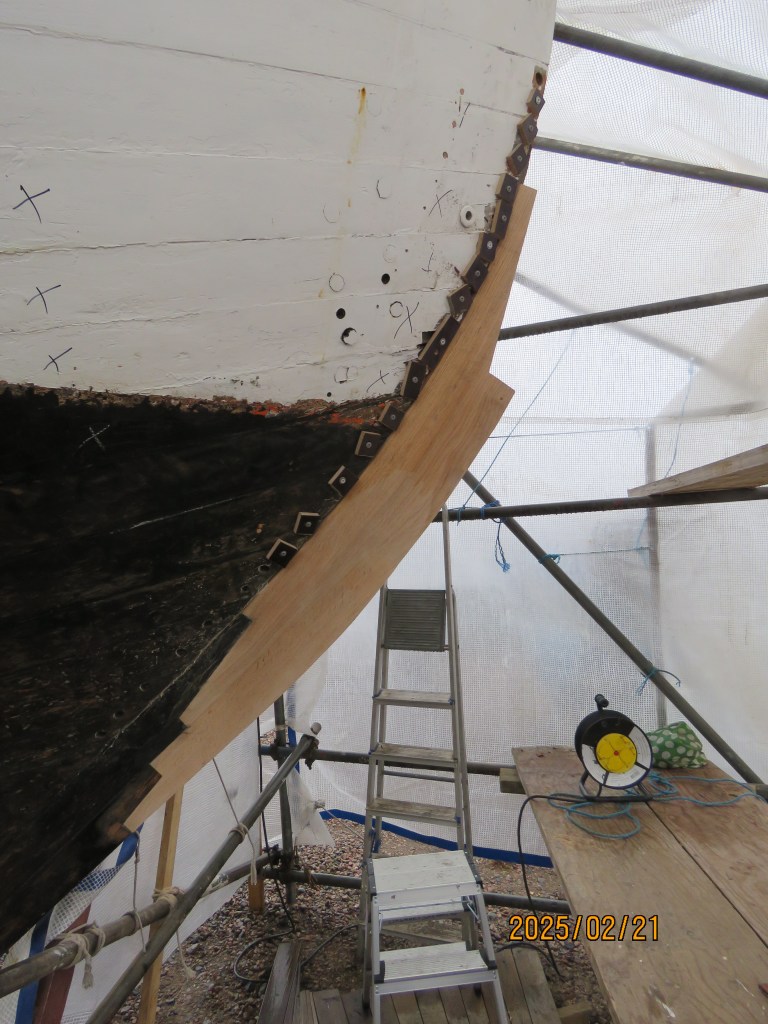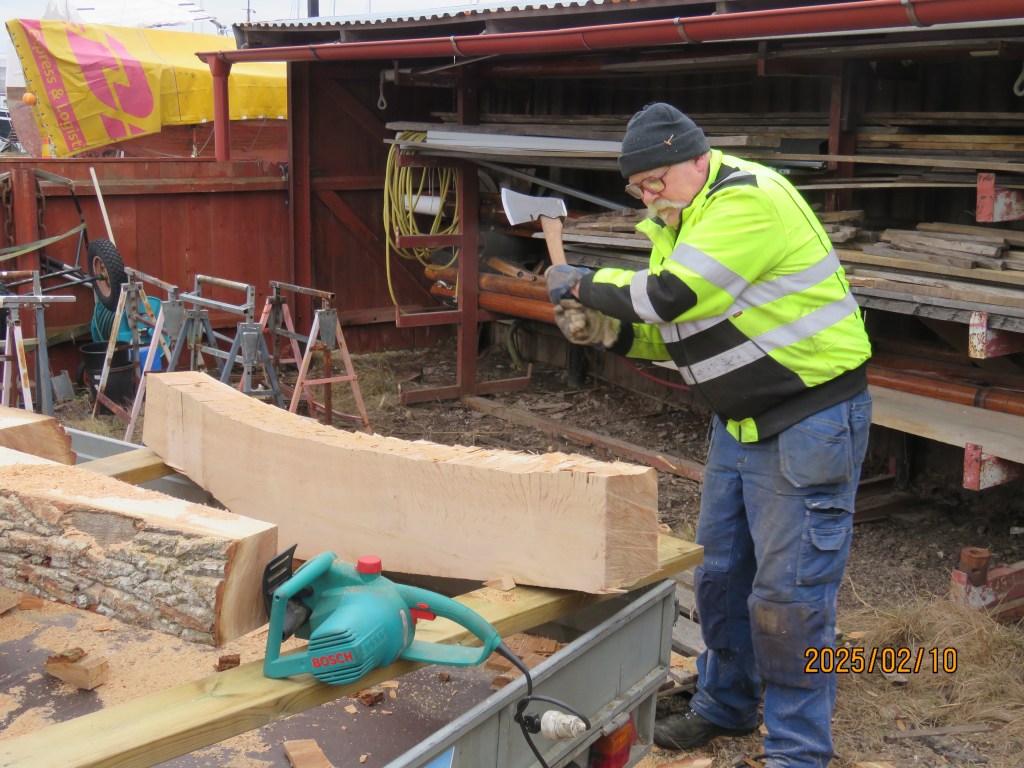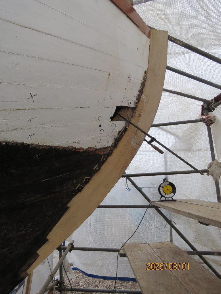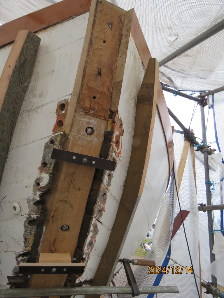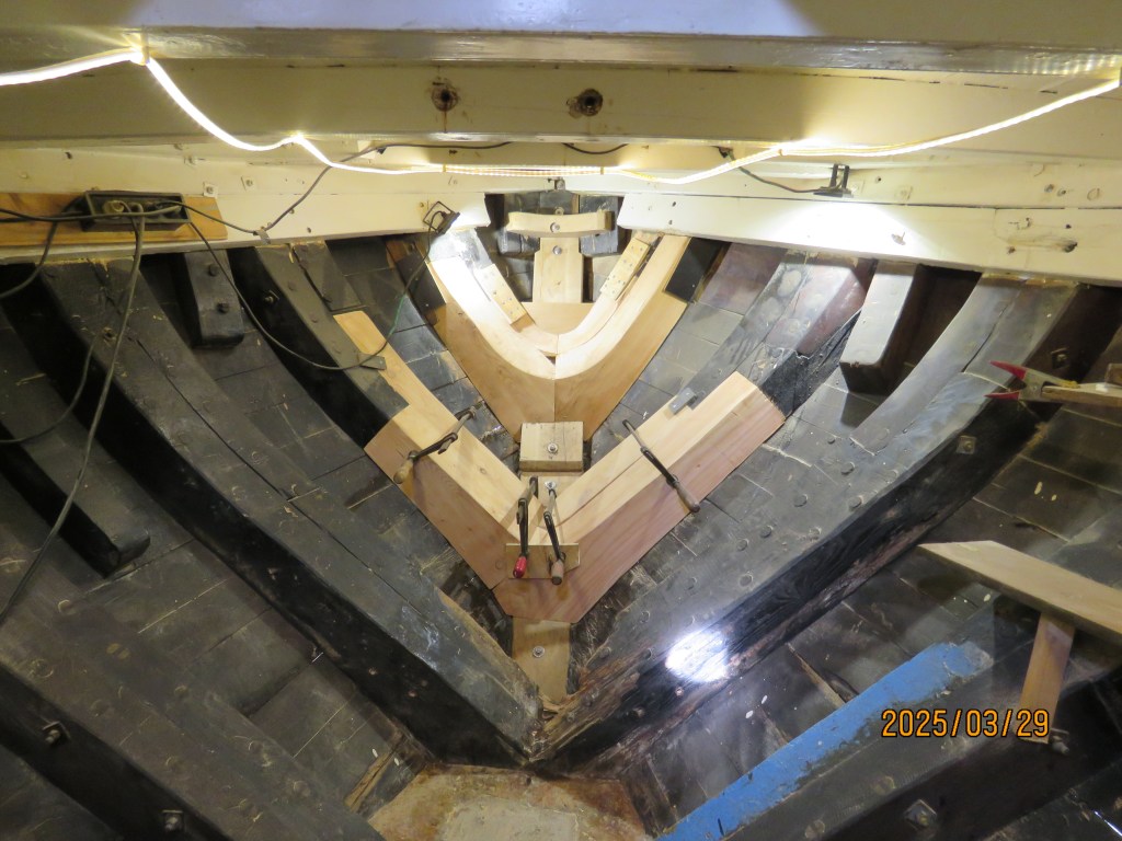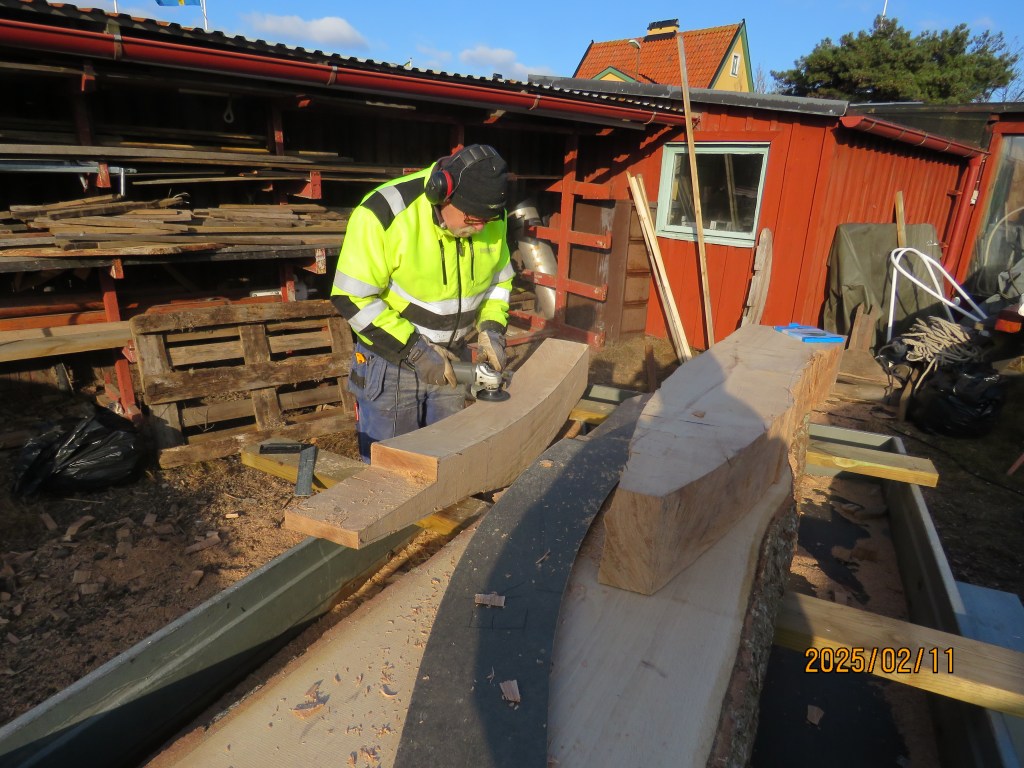Utfört arbete medan DAGMAR stått på land 2024-2025 Stäven byggs med en inre del… …och en yttre del Delar till spant Tillbaka Tillbaka till bildgalleri